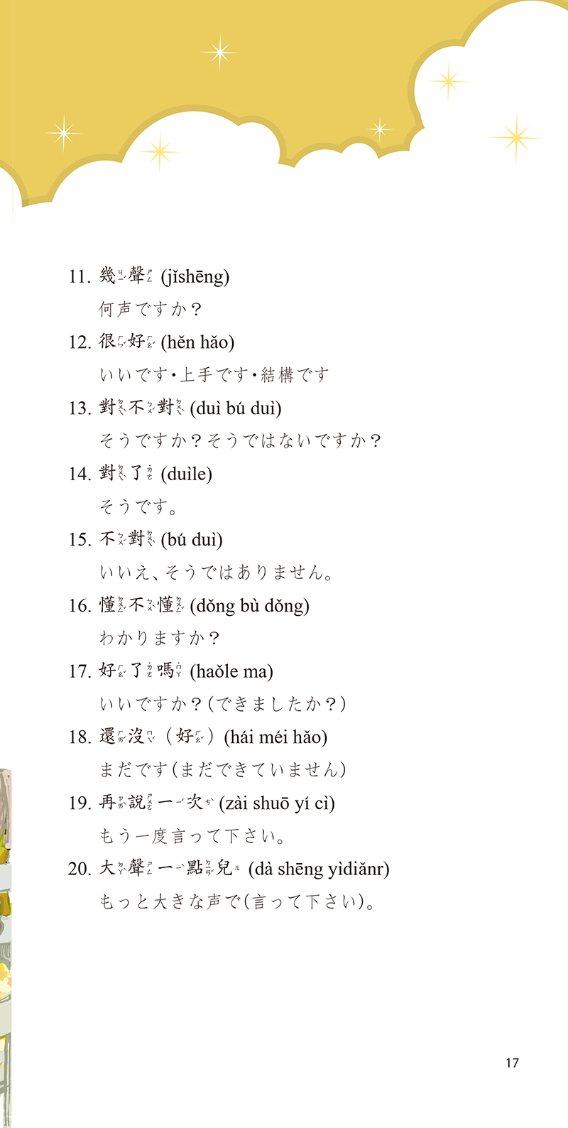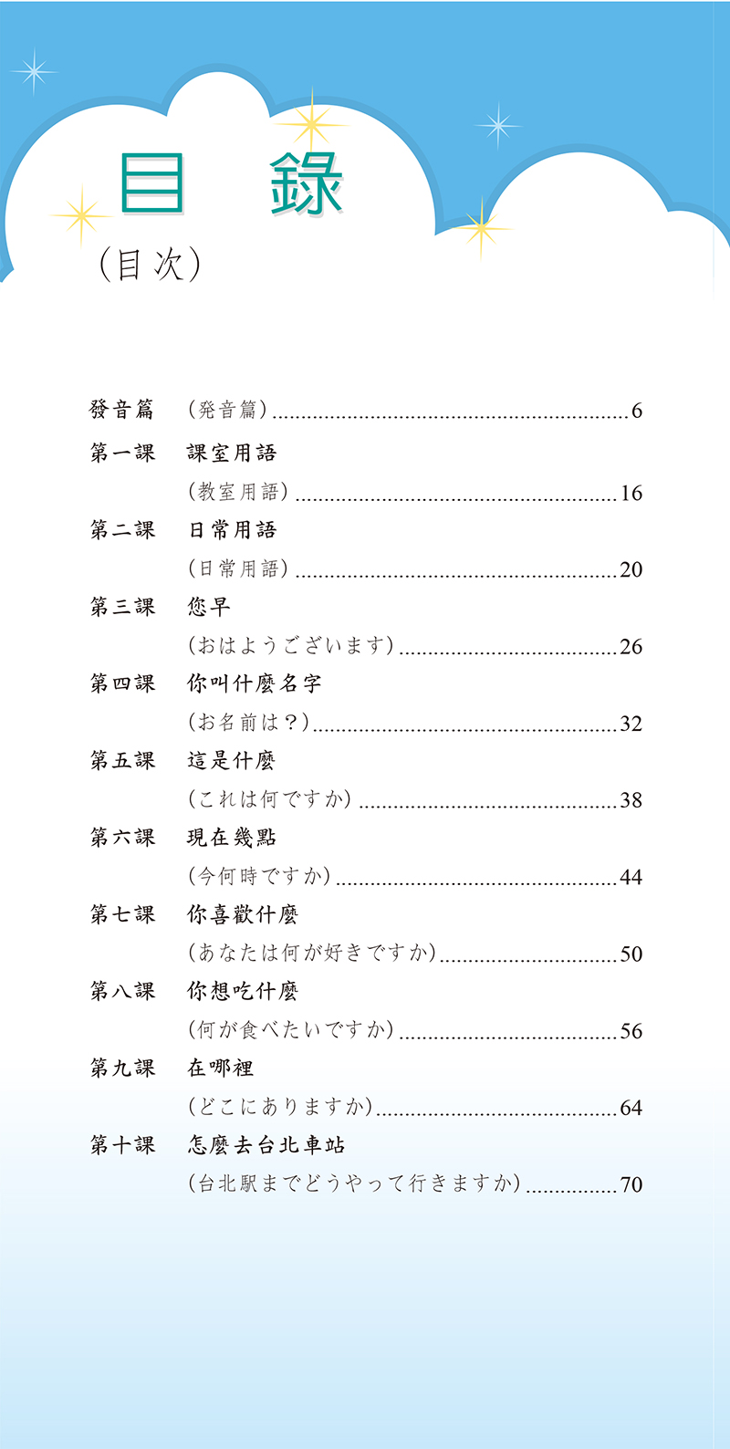 ◎共10課課文,從對話、詞彙短句到情境模擬練習,都是日常生活溝通必備用語,一書在手,立刻在華語世界行得通。