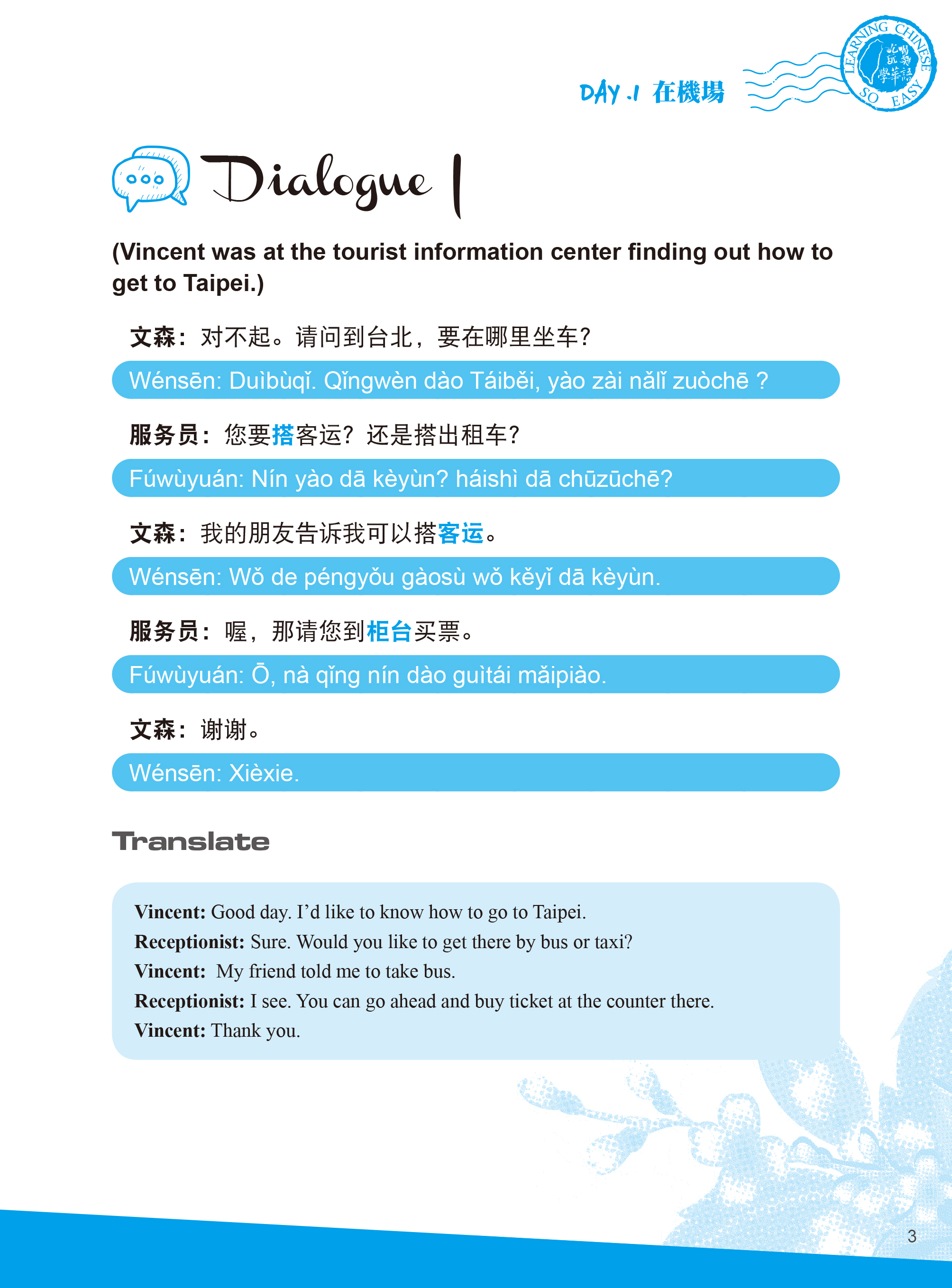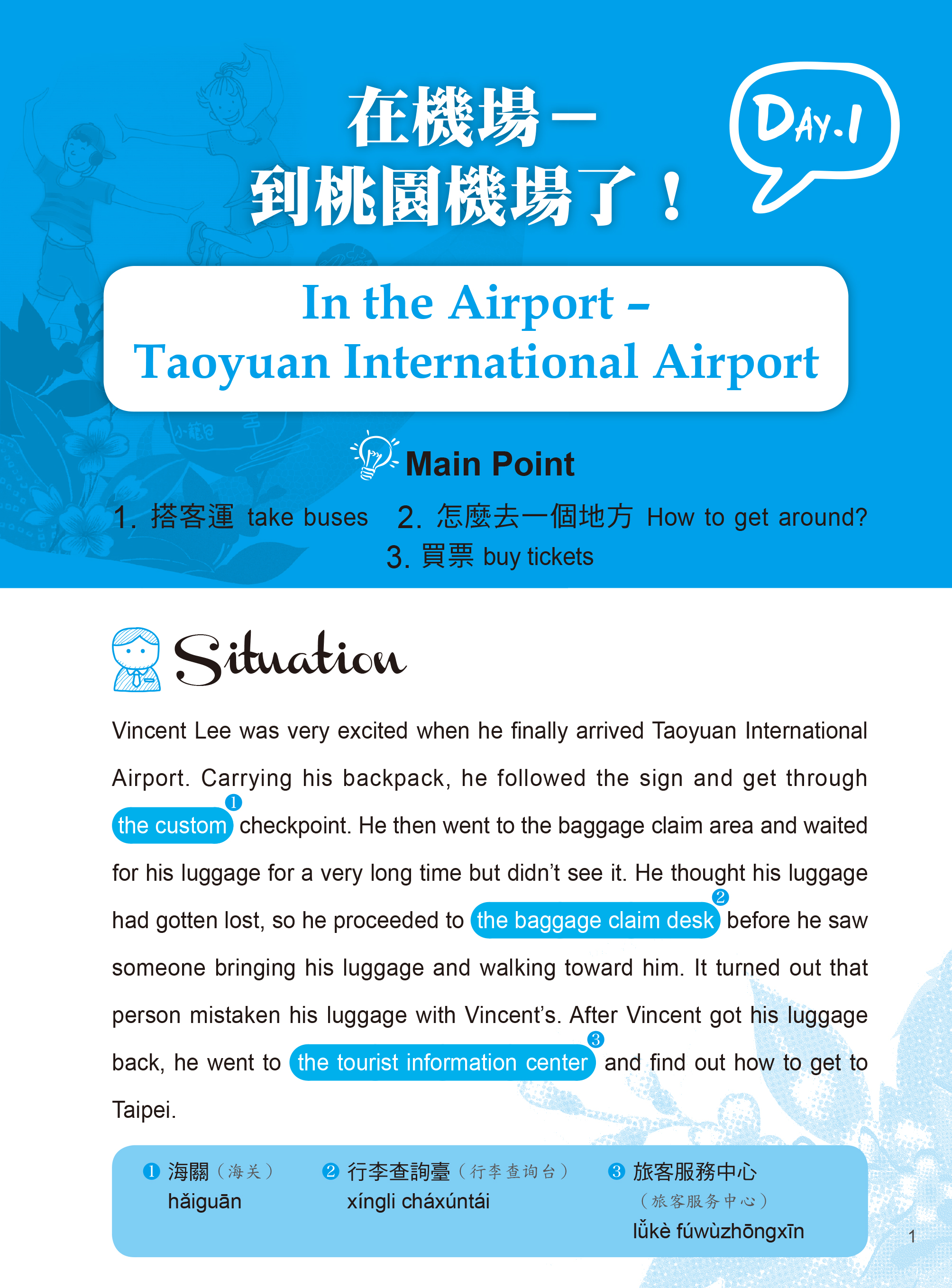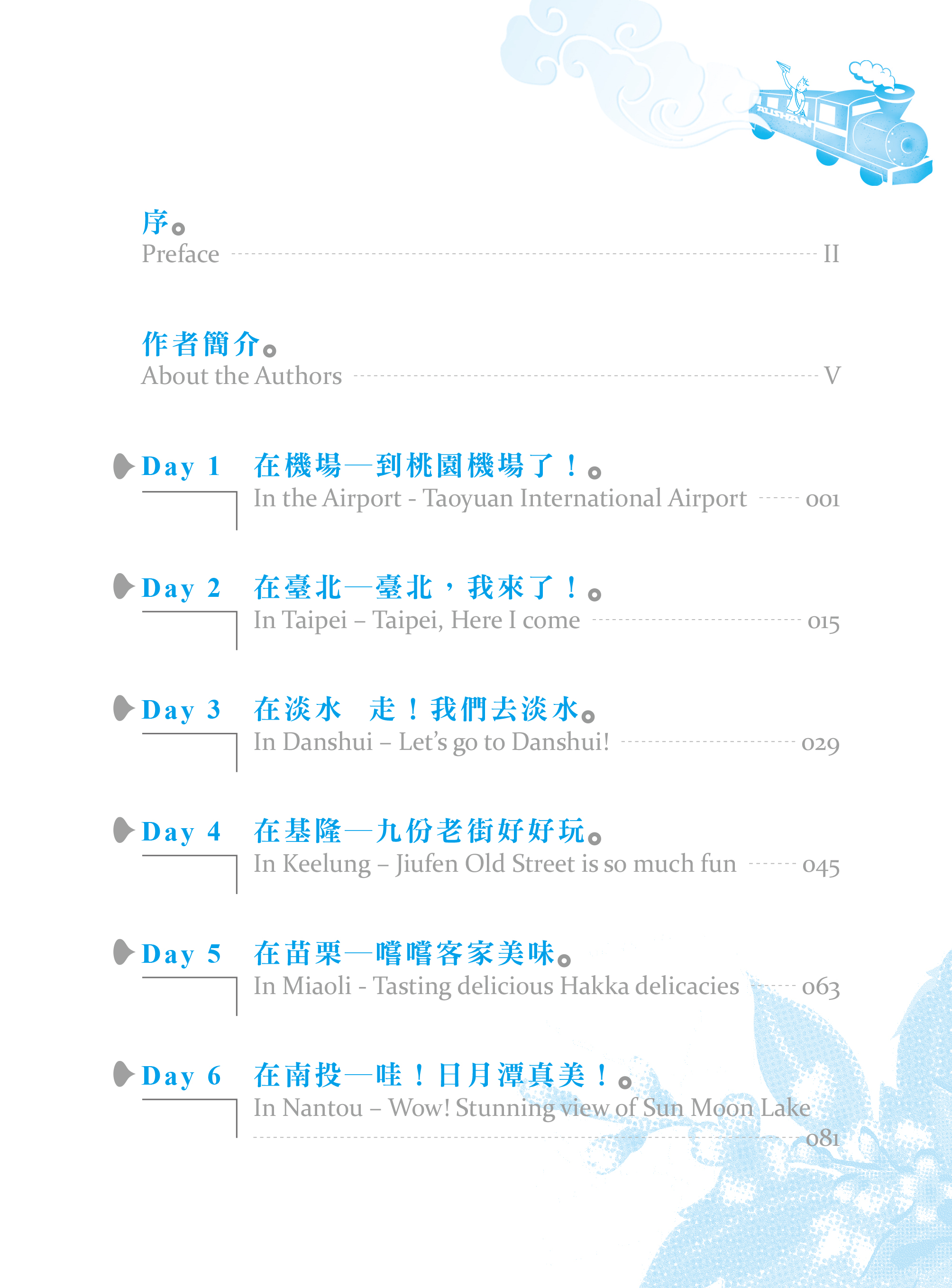 《OH! MY GUIDE! 吃喝玩樂學華語》以功能性、主題性及實用性的方式規劃教材架構。 每課皆有3篇情境對話、1頁單元練習、1~2句華語常用說法(類似禮貌/客氣用語)。本書內容規劃以及鎖定的程度,和目前市面上以旅遊為主題的華語教材有所區隔,內容更為實用且生活化,並加入外籍人士在旅途中可能發生的困難並給予解決建議。