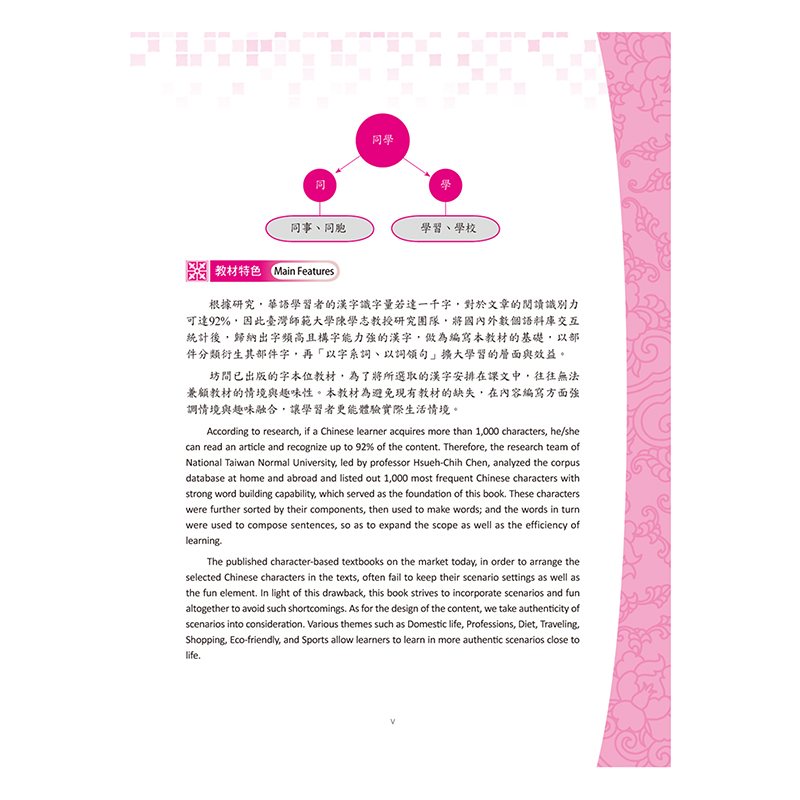 .適用於A2到B1的華語學習者,幫助學生系統式集中識字。