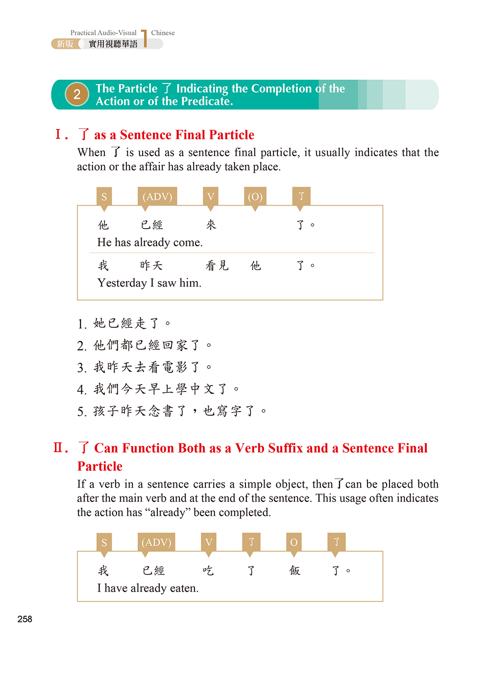 The New Version Practical Audio-Visual Chinese is divided into Vol. 1, Vol. 2, Vol.3, Vol.4 and Vol. 5, a total of 5 volumes. Each volume consists of a textbook, a teacher’s manual, a student workbook, the MP3 materials, etc. It is developed by the Ministry of Education of R.O.C., it is considered to be the benchmark and the most comprehensive and practical material for Chinese language adult learners. It is also used as one of the best teaching materials for Chinese language courses in language centers and cram schools nationwide.
