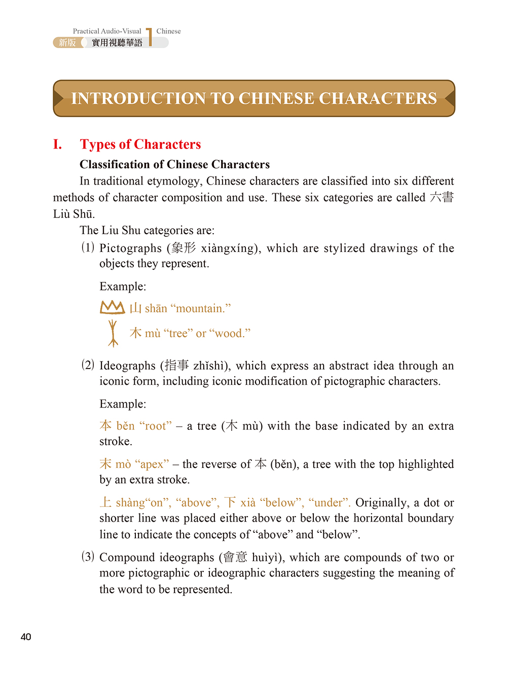 The material is designed for developing the basic Chinese learners’ ability on listening, speaking, reading and writing through the courses with the lessons based on grammar rules with Chinese daily conversation to reach the goal of practical learning and usages. The content of each material includes 1. Authentic text, conversations; 2. Vocabulary, character and the usage; 3. The essentials of Chinese grammar and the practices of sentence patterns; 4. Classroom activities; 5. Short essays; 6. Definitions.